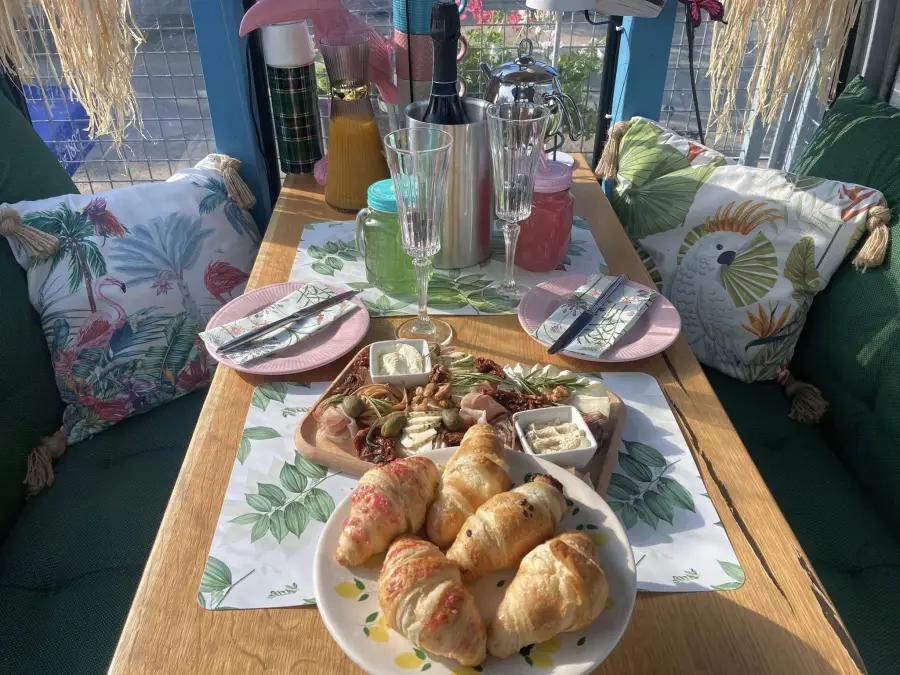 Káva illy / Ronnefeldt tea Prosecco Scavi & Ray with raspberries Exotic fresh juice Mediterranean-style cutting board Poached egg mini tortilla Tropical fruits & mϋsli Danish + fresh pastries French Spreads and Chutney Yoghurt pancakes Vitamin water